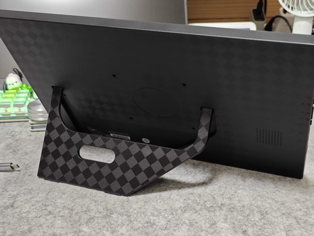 その他、視野角やコントラスト比、リフレッシュレートなどもモバイルモニターとしては十分な性能を備えていますし、VESA規格に対応したネジ穴があるので、スタンドやモニターアームに固定しての使用もできます。