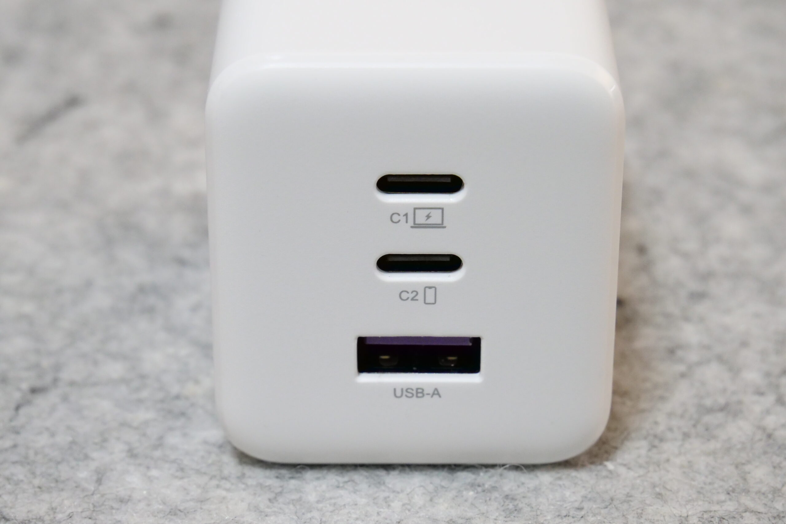 ポート数は3ポートで、ラップトップの充電をしながらスマホやイヤホンの充電もできる感じになっています。